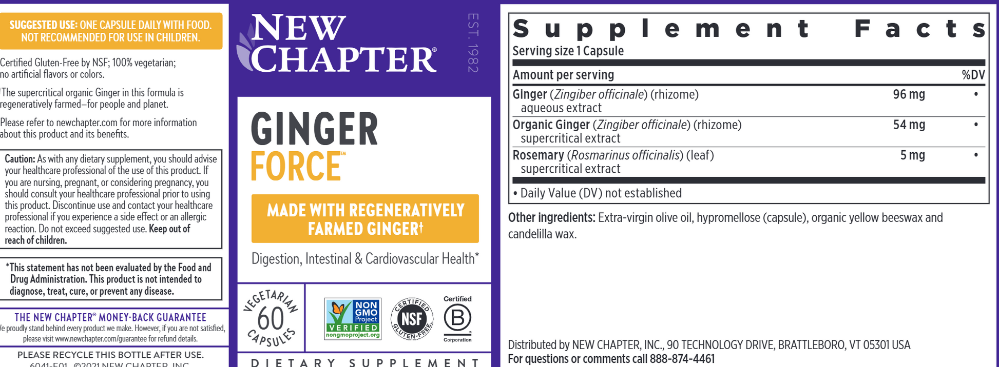View compareGet to the root of traditional healing herbs with Ginger Force from New Chapter. For 100% herbal pain relief, joint support, digestion support, healthy inflammation response, and cardiovascular support, Ginger Force delivers two extracts of pure Ginger rhizome, in just one capsule daily.* Our potent, whole-food approach to Ginger is Non-GMO Project Verified and 100% vegetarian & sugar-free.* *These statements have not been evaluated by the Food and Drug Administration. This product is not intended to diagnose, treat, cure, or prevent any disease.