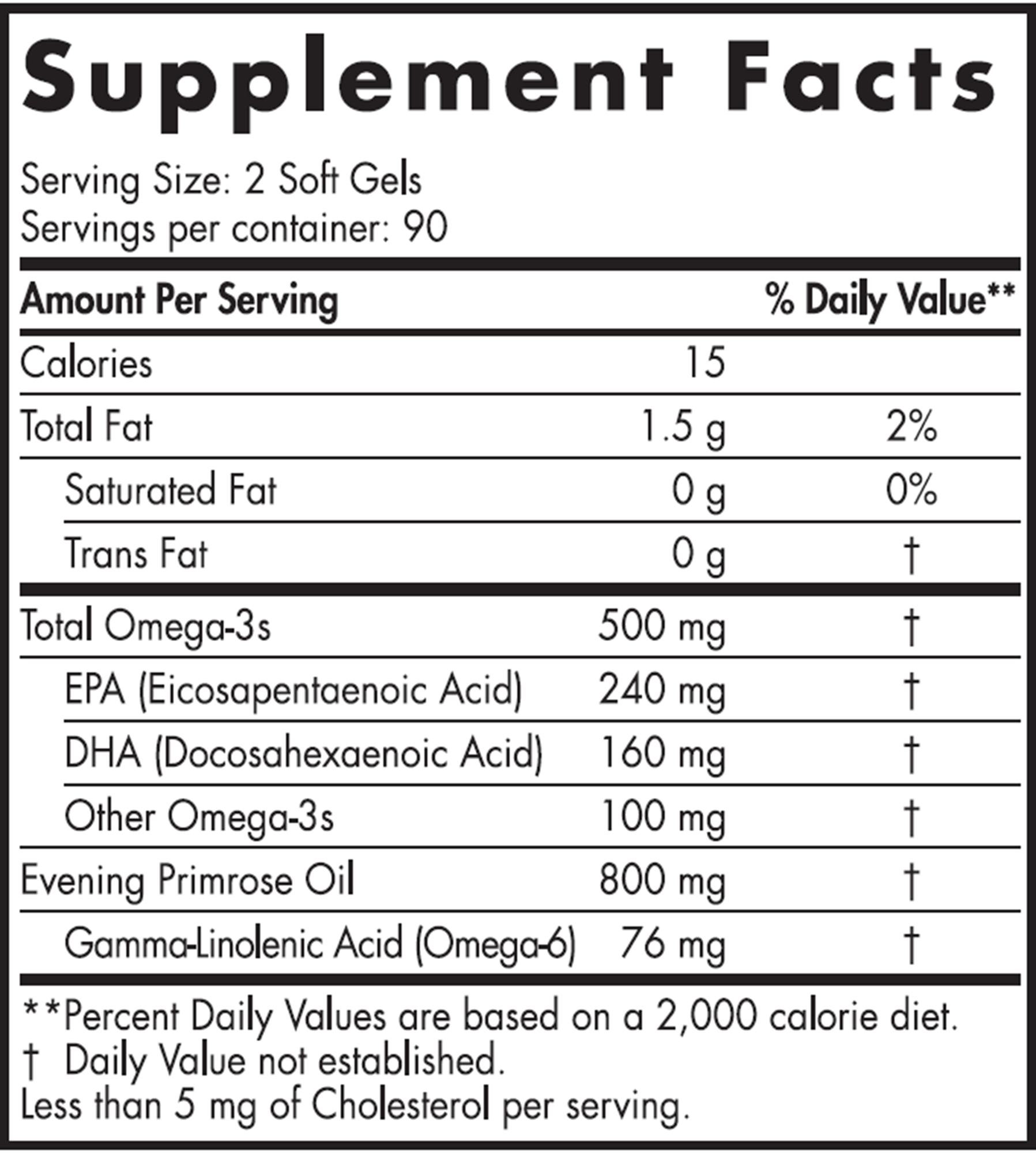 View compareCreated to address women’s specific nutritional needs, Balanced Omega™ combines 500 mg omega-3 fish oil with 76 mg gamma-linolenic acid (GLA) from evening primrose (Oenothera biennis). Evening primrose is a wildflower native to North America, known to contain a high concentration of GLA in its seeds.