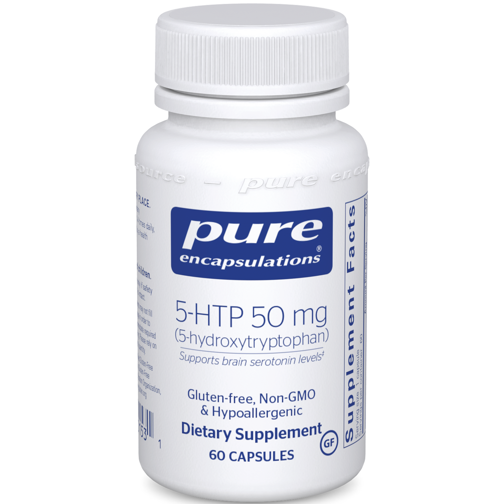 5-Hydroxytryptophan (5-HTP) is an intermediate in the natural synthesis of the essential amino acid, tryptophan, to serotonin. The enzyme tryptophan hydroxylase adds a hydroxyl group (OH) to tryptophan, forming the 5-HTP intermediate. In the body, it converts to serotonin with the removal of a carboxyl group (COOH) by a second enzyme. Serotonin is an important neurotransmitter involved in the regulation of endocrine and brain activity responsible for emotion, satiety, and sleep/wake cycles. In clinical studies, the administration of 5-HTP supported serotonin production. The 5-HTP supplied in this supplement is derived from the Griffonia simplicifolia plant.*