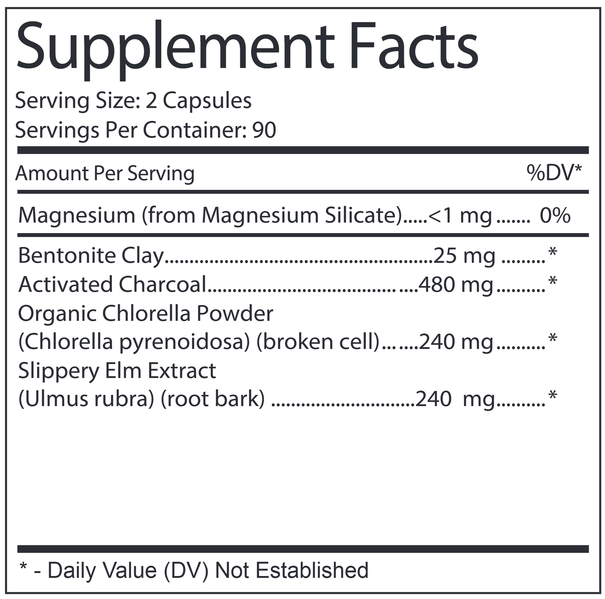 We’ve included activated charcoal, chlorella, and bentonite clay to soak up and bind the toxins so they can be moved out of the body while decreasing absorption. Slippery elm bark has been included to support gut regularity.
