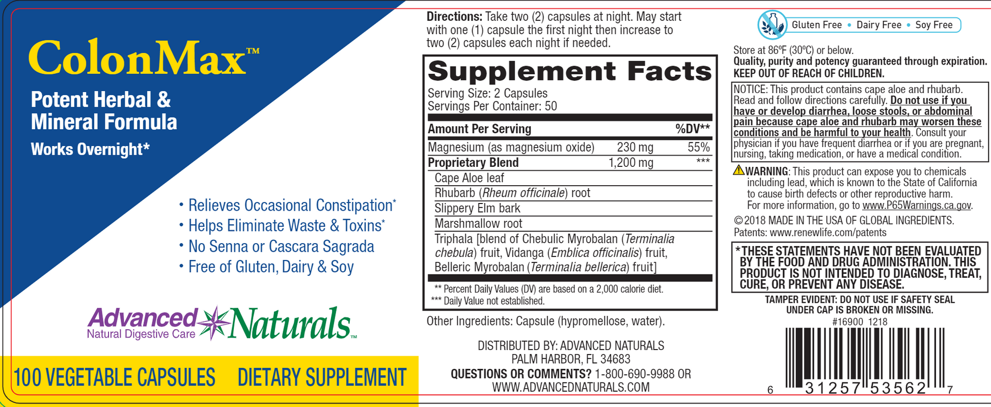 View compareColonMax is a natural formula made with herbs and magnesium hydroxide to help relieve occasional constipation.* This unique formula combines the following ingredients: