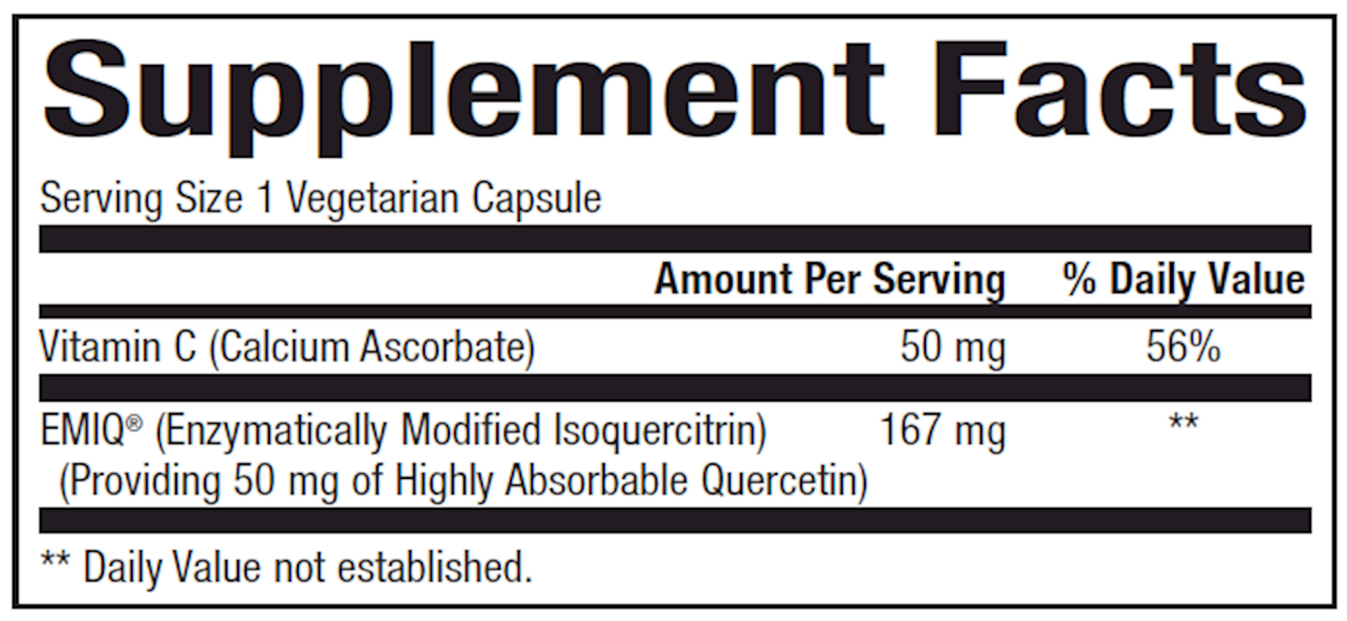 • Provides 167 mg enzymatically modified isoquercitrin (EMIQ) and 50 mg vitamin C per capsule