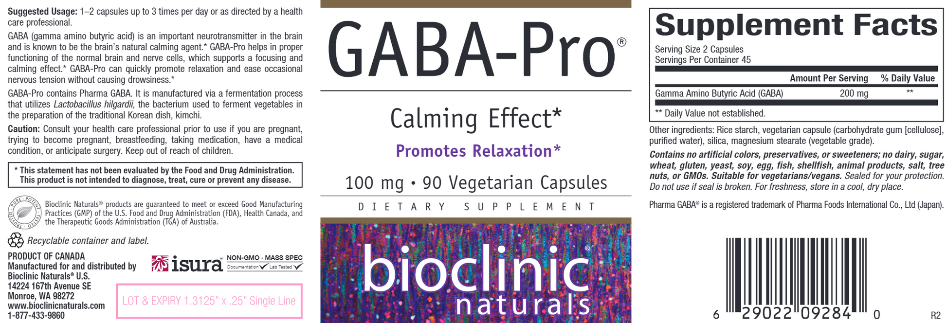 • GABA-Pro uses Pharma GABA, the natural form of GABA which is superior to the synthetic. It is naturally manufactured via a fermentation process that utilizes Lactobacillus hilgardii, the bacterium used to ferment vegetables in the preparing the traditional Korean dish kimchi.