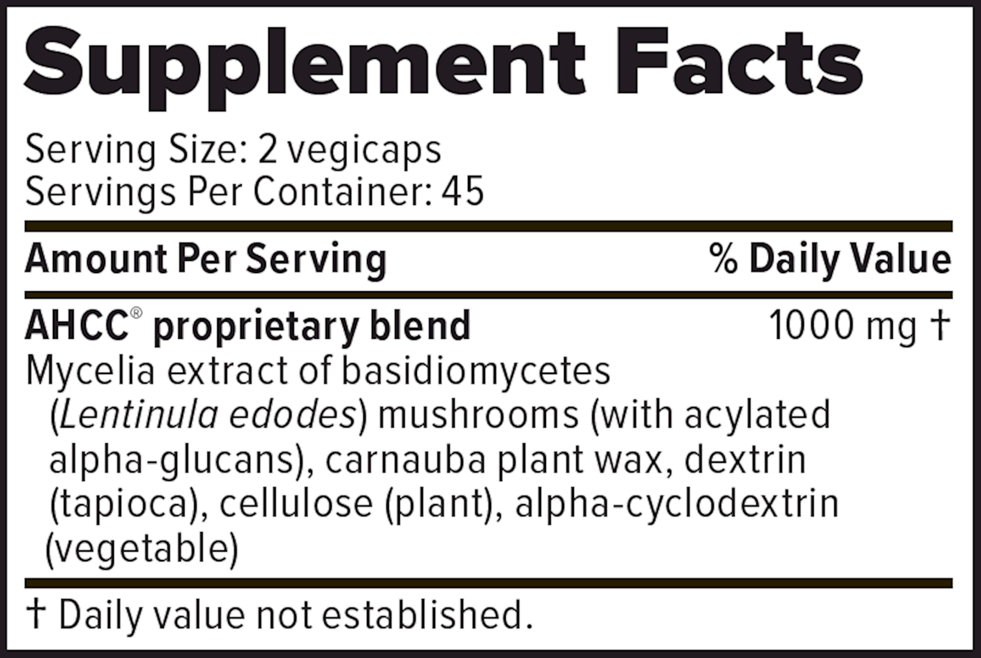A fermented extract of medicinal mushroom mycelia (roots), AHCC is one of the world’s most researched specialty immune supplements, supported by over 20 human clinical studies. Studies on AHCC have been conducted at some of