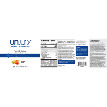 Unjury® Protect & Restore Advanced Protein+ is a medical food co-therapy for GLP-1RA medications. This specialized clinical nutrition drink is formulated to protect muscle in the presence of muscle wasting, replenish nutrients, ease digestive discomfort, and balance metabolic health, supporting overall quality of life. This advanced formula features an optimized protein and macronutrient blend with essential branched-chain amino acids, including added leucine, to protect skeletal muscle and minimize sarcopenia, providing specialized nutritional support for obesity, diabetes, cachexia, and age-related muscle loss.