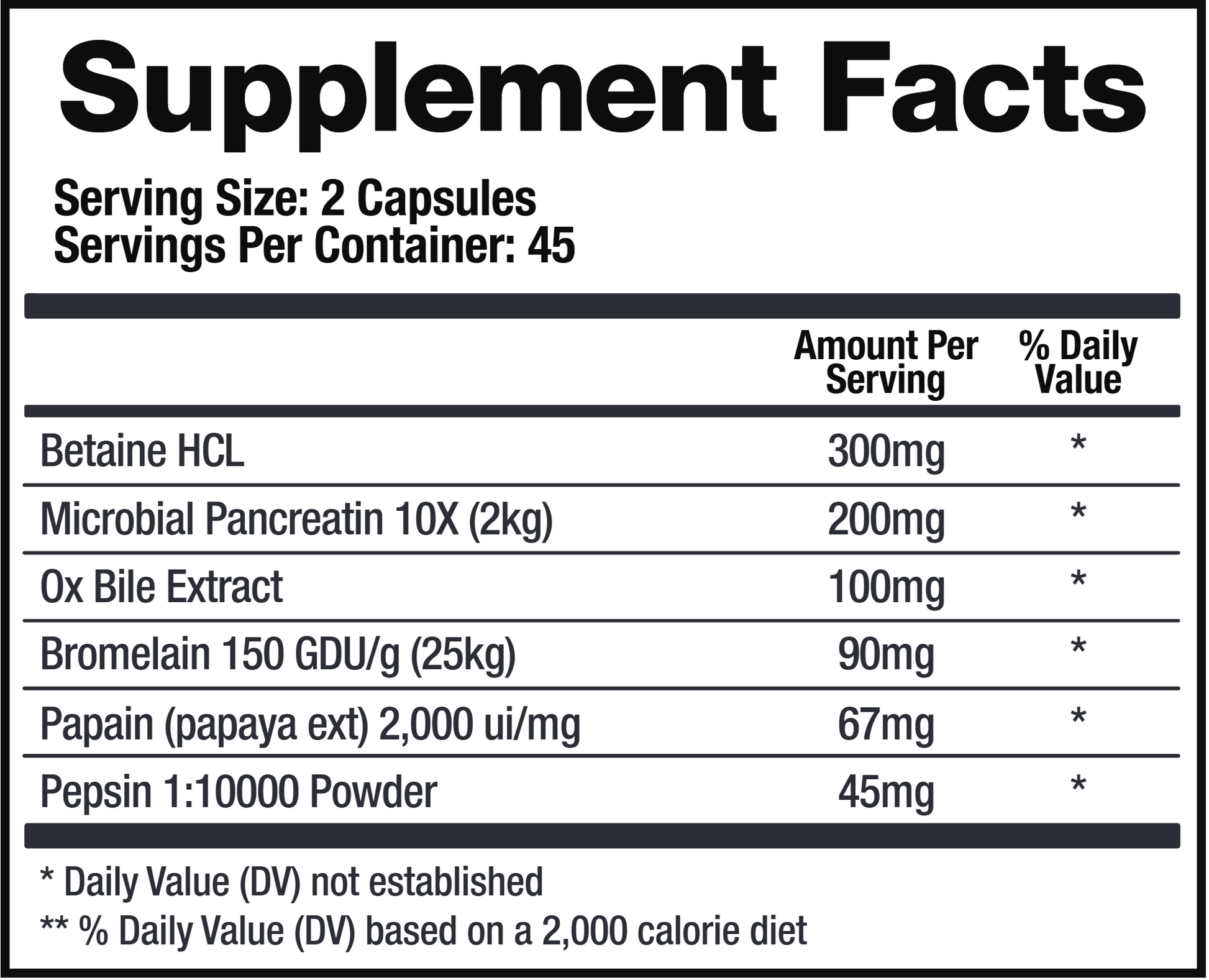 • Pancreatin 10X, Bromelain, Papain, Pepsin – enzyme blend