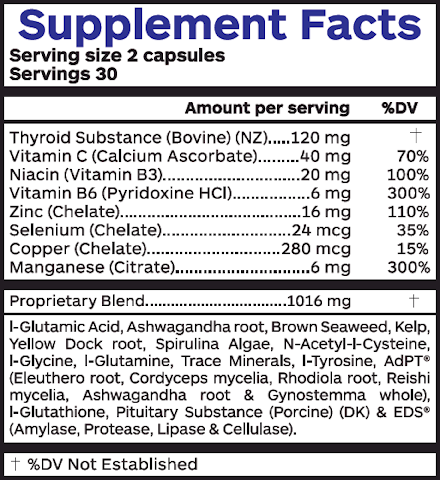 The thyroid is the master gland of metabolism. When your thyroid isn’t functioning effectively, it can affect every aspect of your health, especially weight stabilization, energy levels and mood. An estimated 20 million Americans have some type of thyroid imbalance. The Thyroid supports our body’s size, a healthy weight, healthy blood sugar levels already in the normal range, a healthy mood by a hormone called T-3. This hormone is converted in the body from T-4 to be the useful hormone to balance our system. The majority of this conversion takes place in the liver, so supporting a healthy liver is an important part of glandular health. Professional Botanicals has included Thyroid Substance in this formula, which supports a healthy Thyroid function.*