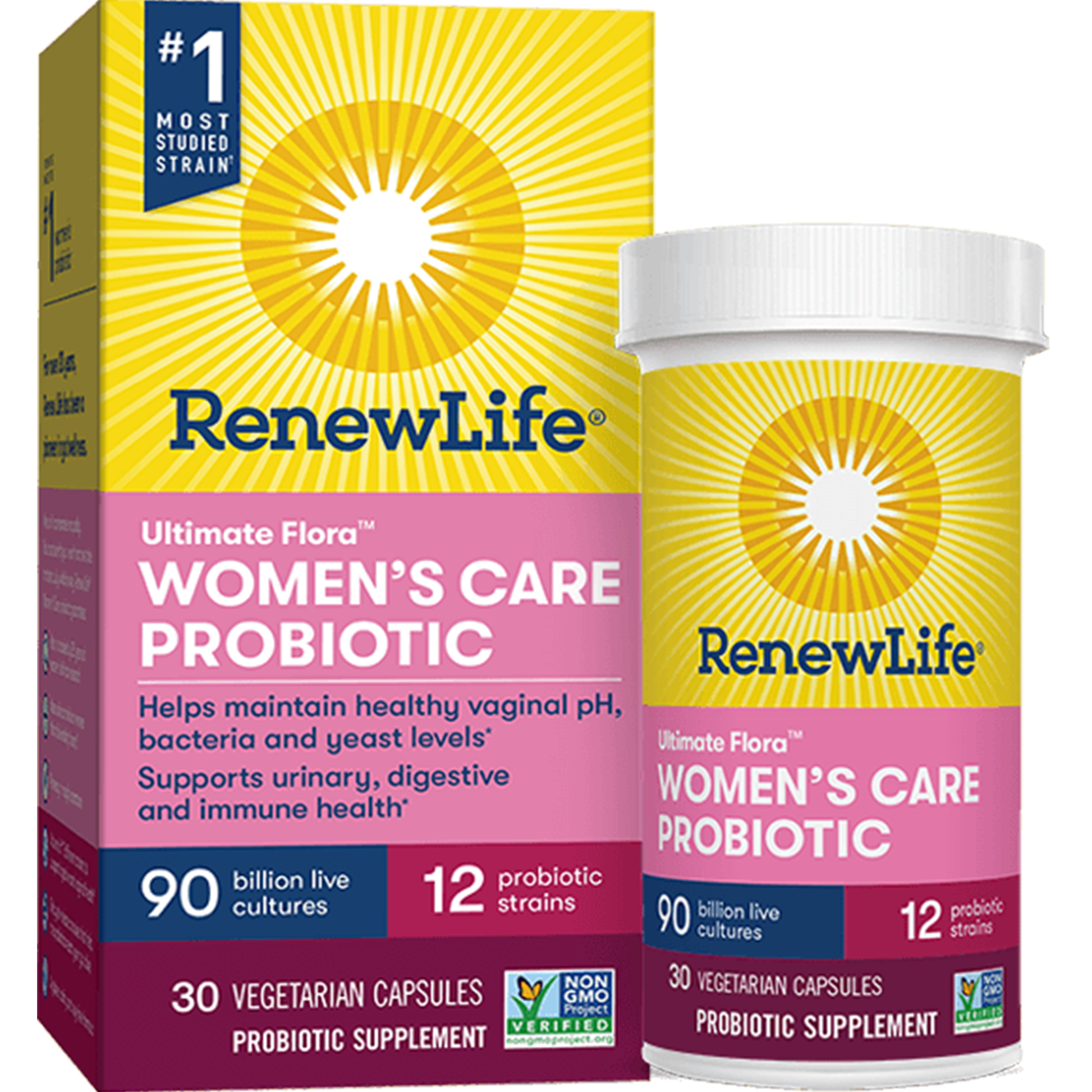 Ultimate Flora 90 Billion WOMEN’S COMPLETE Probiotic is a high-potency formula with 12 specially selected strains designed to