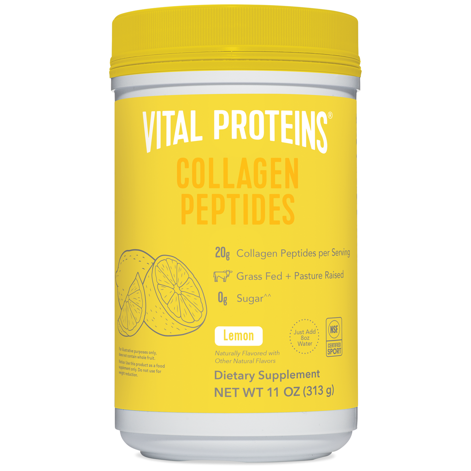 View compareVital Proteins Lemon Collagen Peptides combine collagen for your wellness goals and the refreshing flavor of lemon for your tastebuds. Our collagen peptides are expertly sourced from a single ingredient of grass-fed, pasture-raised bovine hides, ensuring a high quality source of this this nutrient that helps support healthy hair, skin, nails, skin elasticity, and healthy bones & joints.** Made with natural flavors and a touch of stevia, Lemon Collagen Peptides contains 0g of sugar, easily elevating your daily glass of water.