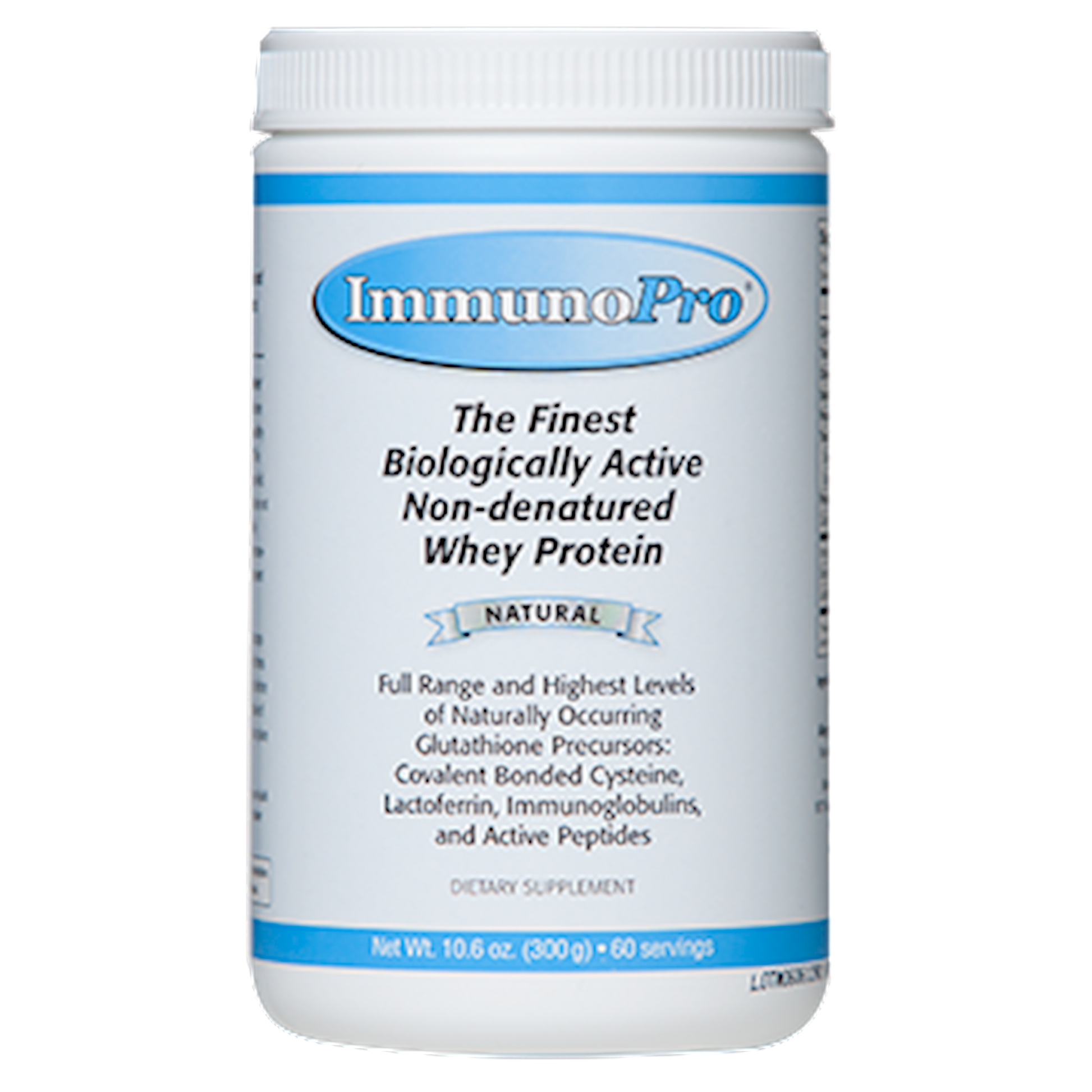 View compareImmunoPro is made with Proserum® The Finest Whey Protein available. It is a proprietary, non-denatured, native whey protein® that is optimally produced to maintain all the fragile immune-supporting components naturally present in fresh raw milk. This means it naturally contains the highest possible levels of lactoferrin, immunoglobulins, serum albumin, active peptides and growth factors.* How is ImmunoPro different from other protein supplements? The milk for ImmunoPro is derived from cows that are grass-fed and graze year-round on natural pastures. It is GMO-free, hormone-treatment-free, pesticide and chemical-free and undergoes minimal processing. The minimal processing produces a product that contains exceptional amounts of important protein components including the vital protein-bound fats not found in most whey protein isolates. The full range of biologically active proteins in ImmunoPro play a major role in the repair of RNA and DNA, antioxidant production (glutathione precursors), healthy liver function, red blood cell production, detoxification, wound healing, muscle formation and healthy immune function.* ImmunoPro contains: • Lactoferrin – 200 mg per 5 grams. An iron-binding protein that enhances iron absorption when needed • Immunoglobulins – 500 mg per 5 grams. Contains numerous immune system benefits* • Bovine Serum Albumin – 220 mg per 5 grams. Along with Lactoferrin and Immunoglobulins, this type of protein contains cysteine and glutamine, precursors in glutathione (GSH) production • Active Peptides (specialized paired amino acids) – Exhibit a beneficial information transfer factor effect on the immune system as well as supporting intracellular glutathione* • Growth Factors – (growth promoting protein fractions) are contained within the protein-bound fats. Their function is to regenerate cells in the body, repair DNA and RNA, help support healthy blood sugar levels in the normal range and help optimize brain function*