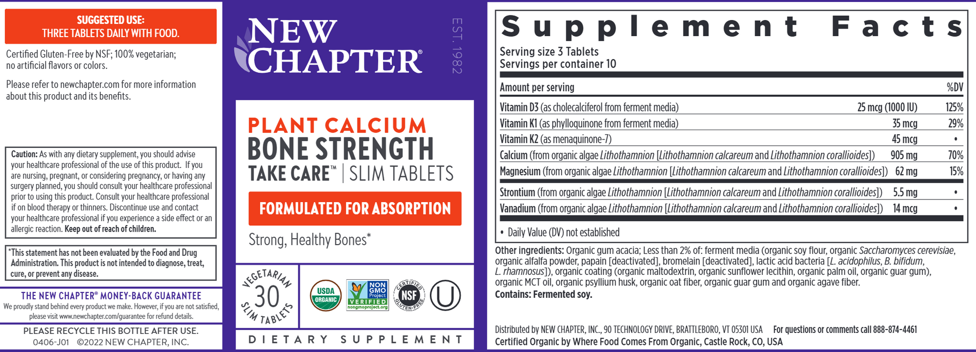 View compareDid you know that most calcium carbonate supplements come from limestone rock and lack other bone-supportive nutrients? Our organic plant calcium is different! Bone Strength Take Care™ is sourced from Red Marine Algae, a whole-food source that’s rich in Calcium plus Magnesium and 70+ trace minerals. No limestone rock! For your best absorbed calcium formula, we add a proprietary blend of Vitamin K2 and fermented D3 that directs calcium right to your bones where you need it, which also helps to maintain artery health.* Experience the magic inside clinical-strength organic plant calcium for 3-in-1 benefits: strong bones, flexible joints, and heart health.* Here at New Chapter®, we sustainably source the highest quality ingredients and craft with you and our planet in mind. We do all this, so you can do you! That’s wellness, well done. *These statements have not been evaluated by the Food and Drug Administration. This product is not intended to diagnose, treat, cure, or prevent any disease.