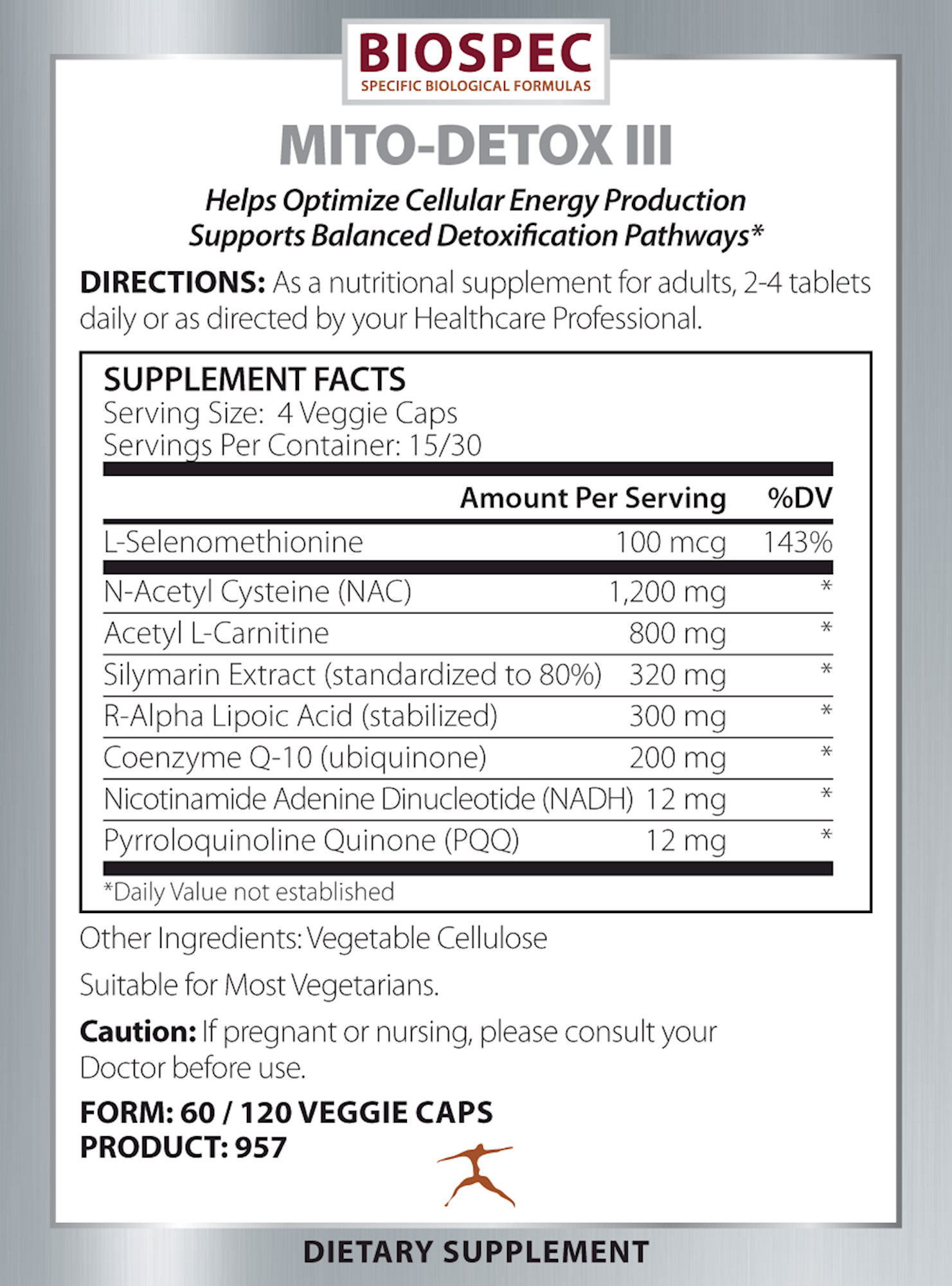 • Mito-Detox III may serve as a foundation of any nutritional intervention intended to support energy production capacity.*