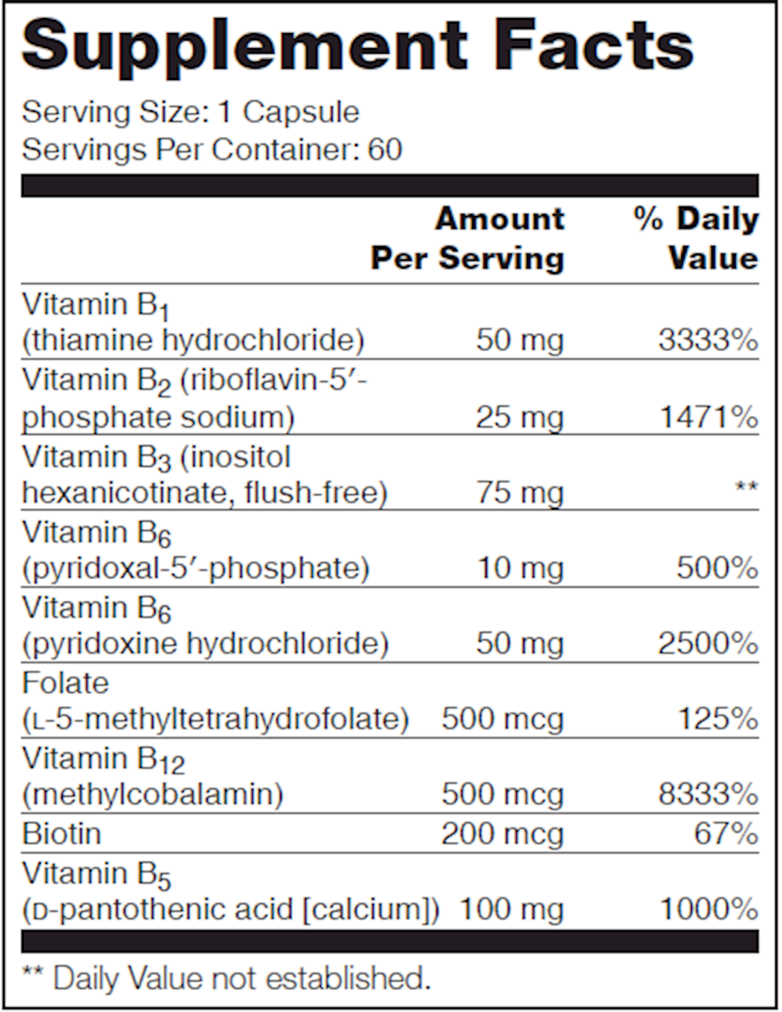 Посмотреть сравнитьB‑Complex SAP is a sophisticated combination of essential B vitamins designed to support energy production and cardiovascular health. B vitamins are water-based coenzymes that assist the process of energy production throughout the entire body, and help maintain healthy skin, hair, eyes, liver, mouth, muscle tone, and the gastrointestinal tract. They are called B‑complex because they complement each other and are only found in food or living tissues as a group. Most importantly, B vitamins work together to promote healthy stress levels and the proper functioning of the nervous system.*