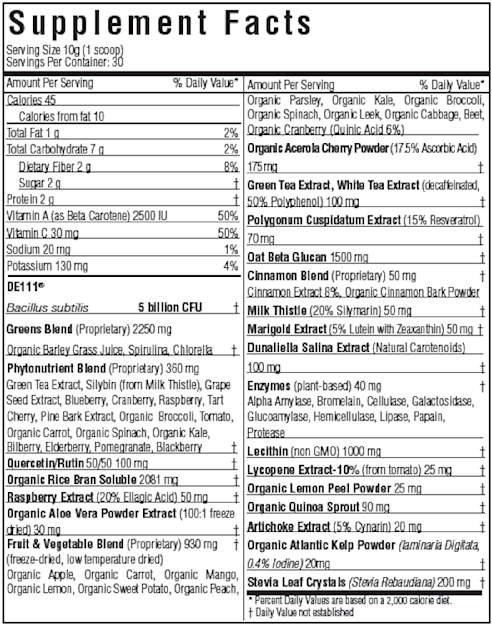 Science-based: Nanogreens + Probiotic supports healthy blood sugar levels already in the normal range, healthy immunity, exercise recovery, and natural energy.* Nanogreens + Probiotic also supports cellular nourishment and protection, can assist your weight-management efforts by supporting satiety and metabolism and can help to maintain strong bones.*