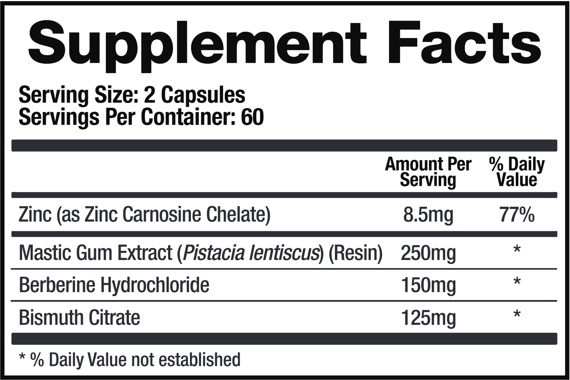 • Mastic gum with berberine HCl and Bismuth Citrate