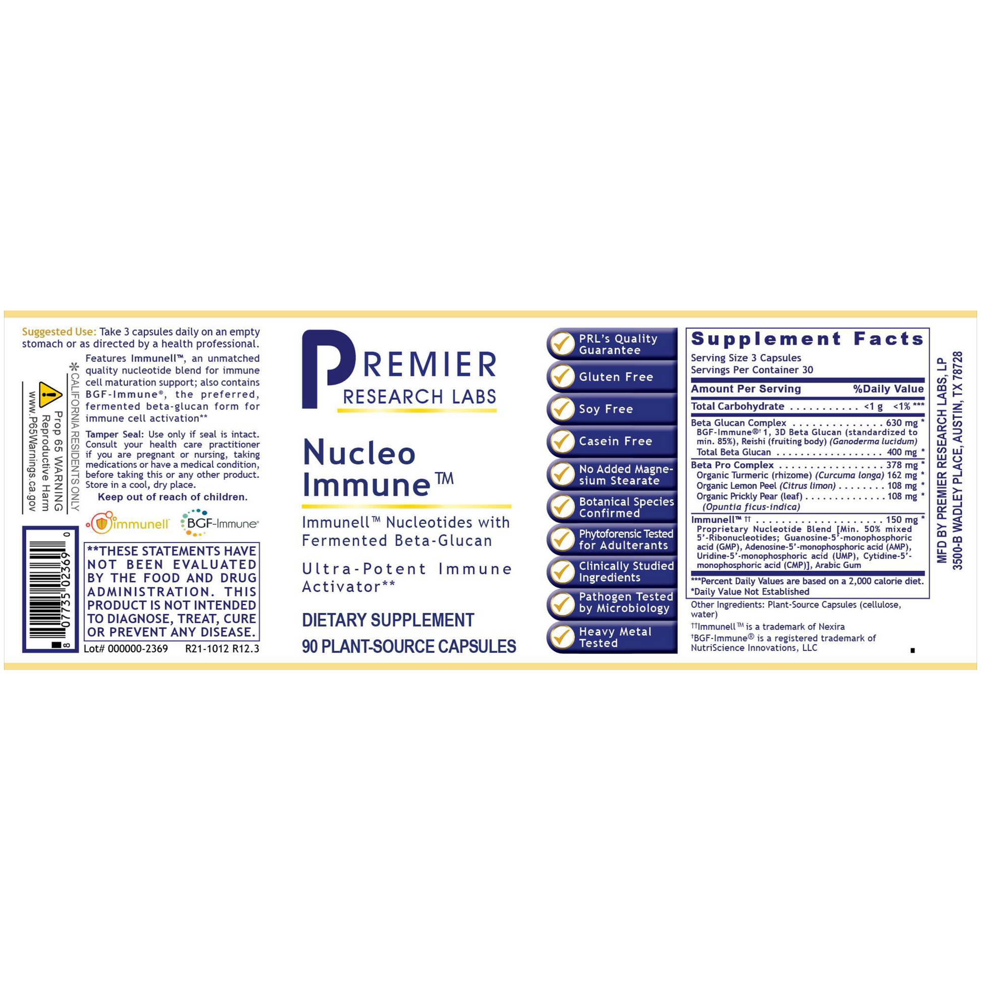 Посмотреть сравнитьNucleo Immune™. Beta-Glucan and Nucleotide Immune Formula. Dietary Supplement. 90 Plant-Source Capsules. Promotes protein synthesis, cellular vitality, beneficial intestinal flora and immune system health. Features BGF-Immune® (fermented beta-glucans) for immune cell activation. Features Immune™: an unmatched quality nucleotide blend for immune cell maturation support and protein synthesis. Supplies a broad range of biocompatible botanical agents that offers a complex phytochemical profile for additional nutritional support.*