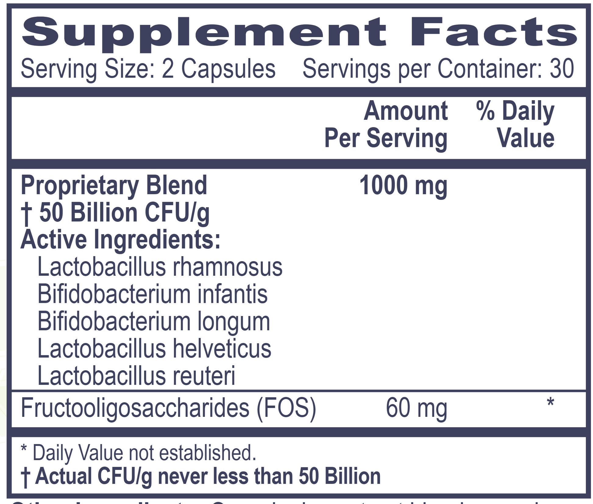 • This formulation contains prebiotics from FOS, Lactobacillus rhamnosus, Lactobacillus reuteri, Lactobacillus helvesticus, Bifidobacterium infantis & longum.
