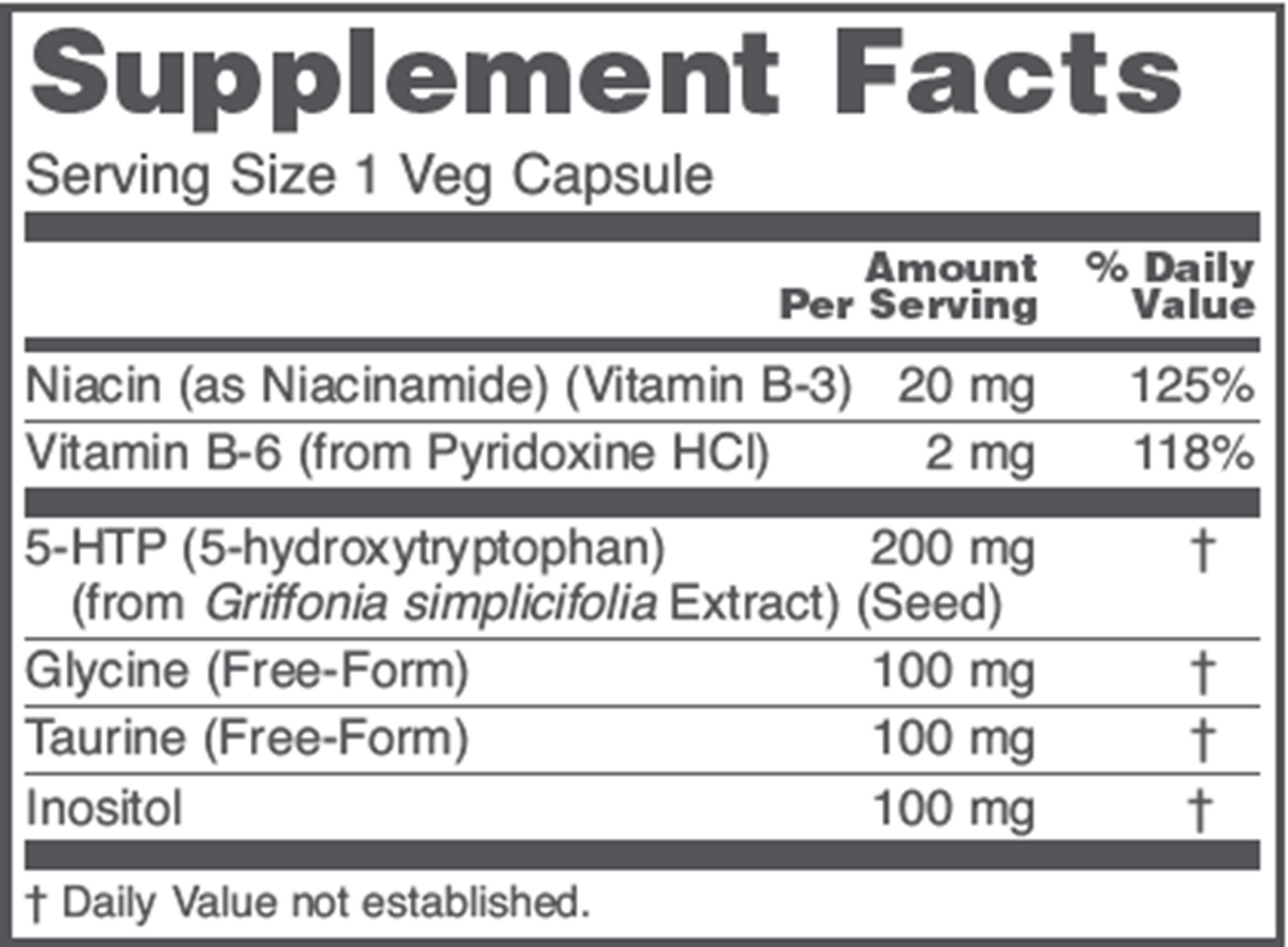 Посмотреть сравнить5-HTP is the intermediate precursor in the natural synthesis of serotonin, a neurotransmitter that helps to regulate mood, appetite, and sleep/wake cycles.* 5-HTP readily crosses the blood-brain barrier and clinical studies suggest that 5-HTP can support healthy serotonin levels.* Serotonin is associated with positive mood and provides a substrate for the production of melatonin.* This formula includes B-Vitamins as cofactors, and is further enhanced with Glycine, Taurine, and Inositol.