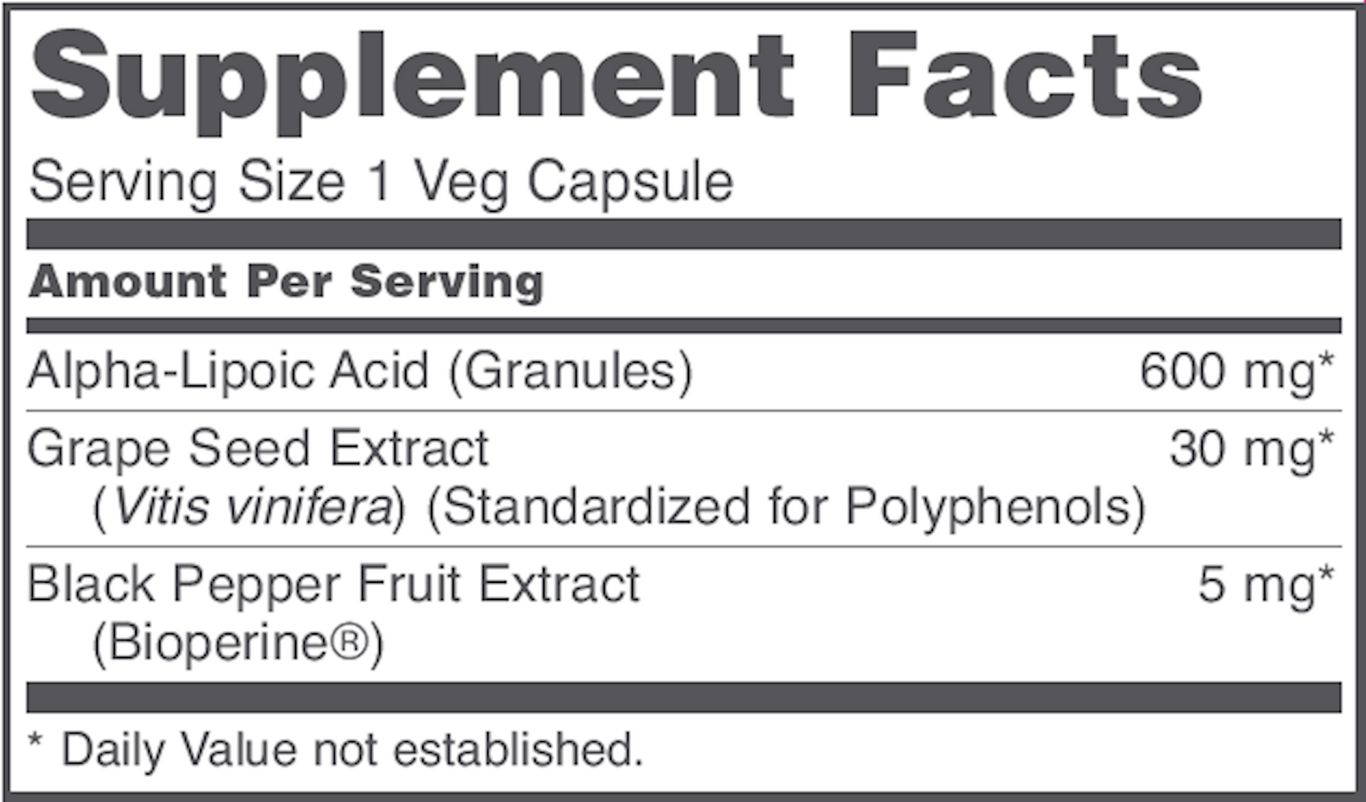 Посмотреть сравнитьAlpha-Lipoic Acid (ALA) is a versatile free radical scavenger that helps to maintain neural health by promoting nerve cell glutathione production, preserving optimal blood flow, and supporting normal nerve cell glucose utilization.* ALA may help to support the maintenance of healthy neural tissues, proper glucose metabolism, and normal cardiovascular function.* Bioperine® is a standardized pepper extract that is known to enhance the bioavailability of some nutrients.*