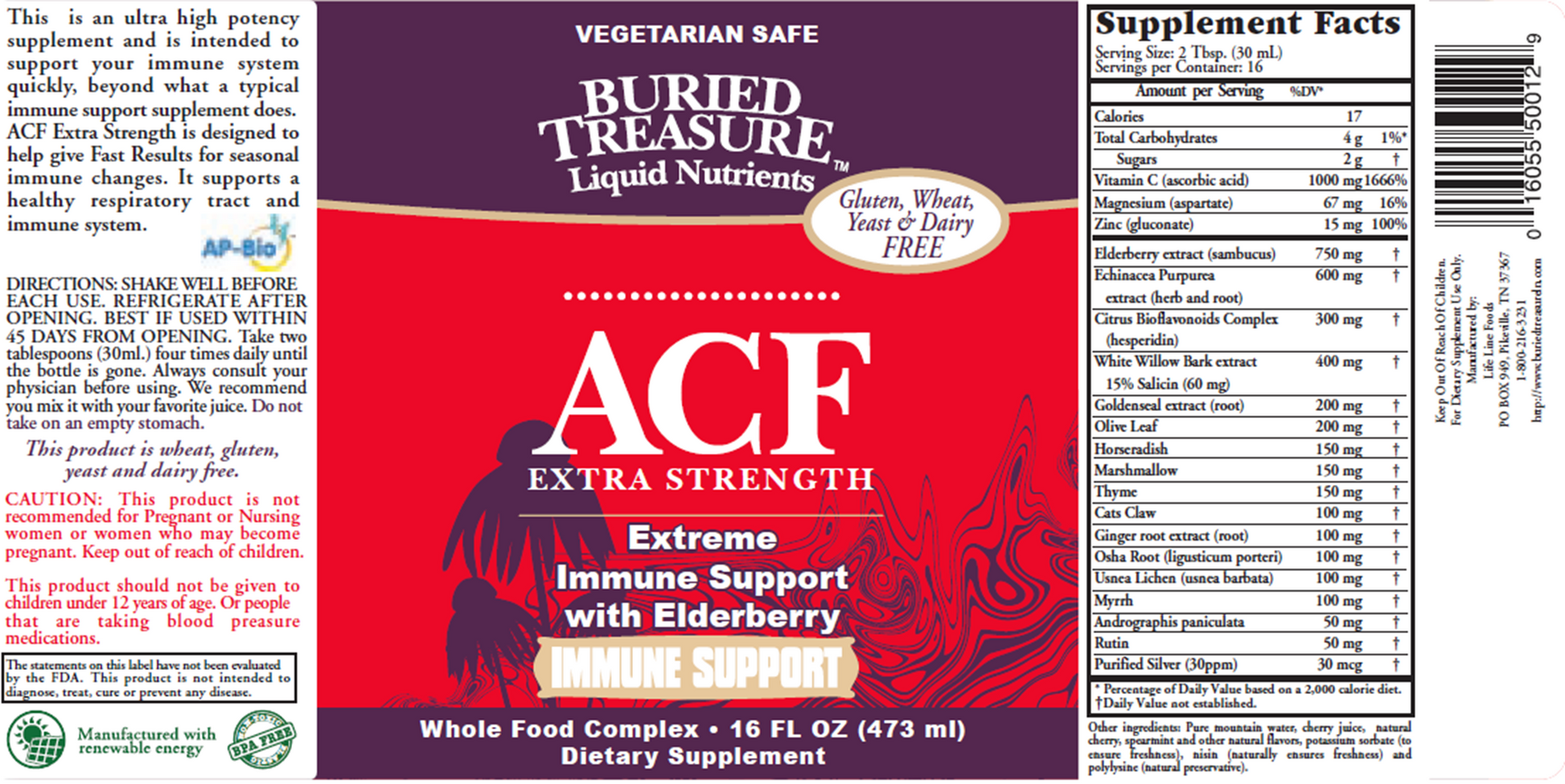 Buried Treasure Extra Strength ACF is an ultra high potency supplement and is intended to support your immune system quickly. ACF Extra Strength is designed to help give fast results for seasonal immune changes.*