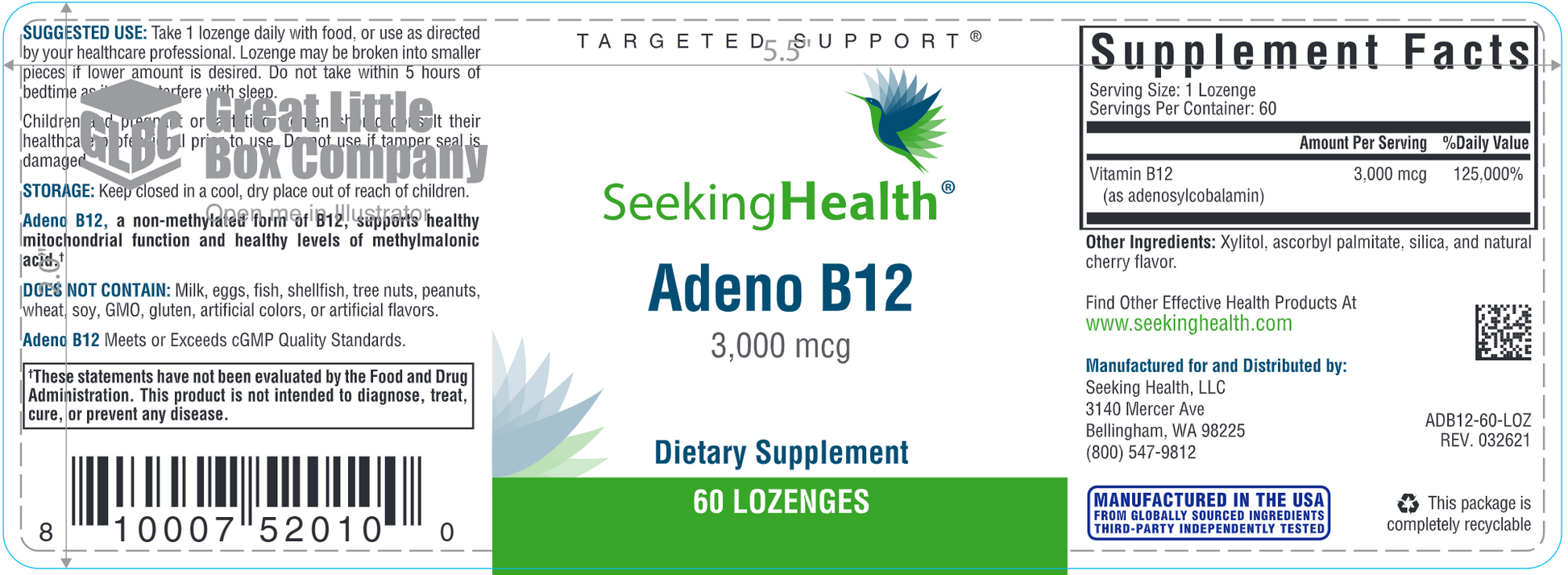Посмотреть сравнитьAdeno B12 Lozenges by Seeking Health provide 3,000 mcg of adenosylcobalamin, the mitochondrial form of vitamin B12, in an easy-to-deliver lozenge. Adenosylcobalamin is considered an active “coenzyme” form of B12, meaning it is used directly in B12-dependent enzyme reactions in the body. This form provides an alternative to methylcobalamin for individuals who may be sensitive to methyl donors or methylated B vitamins.*