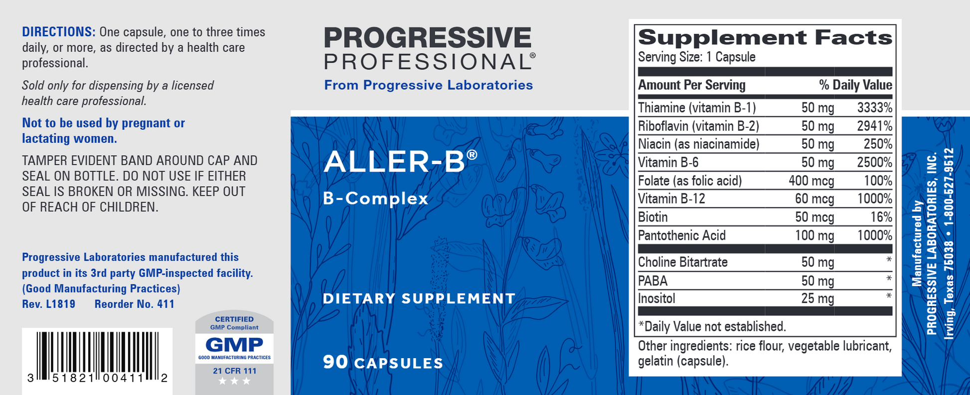 Посмотреть сравнитьAller-B is a high potency B complex in capsule form containing no allergy-provoking fillers and binders.