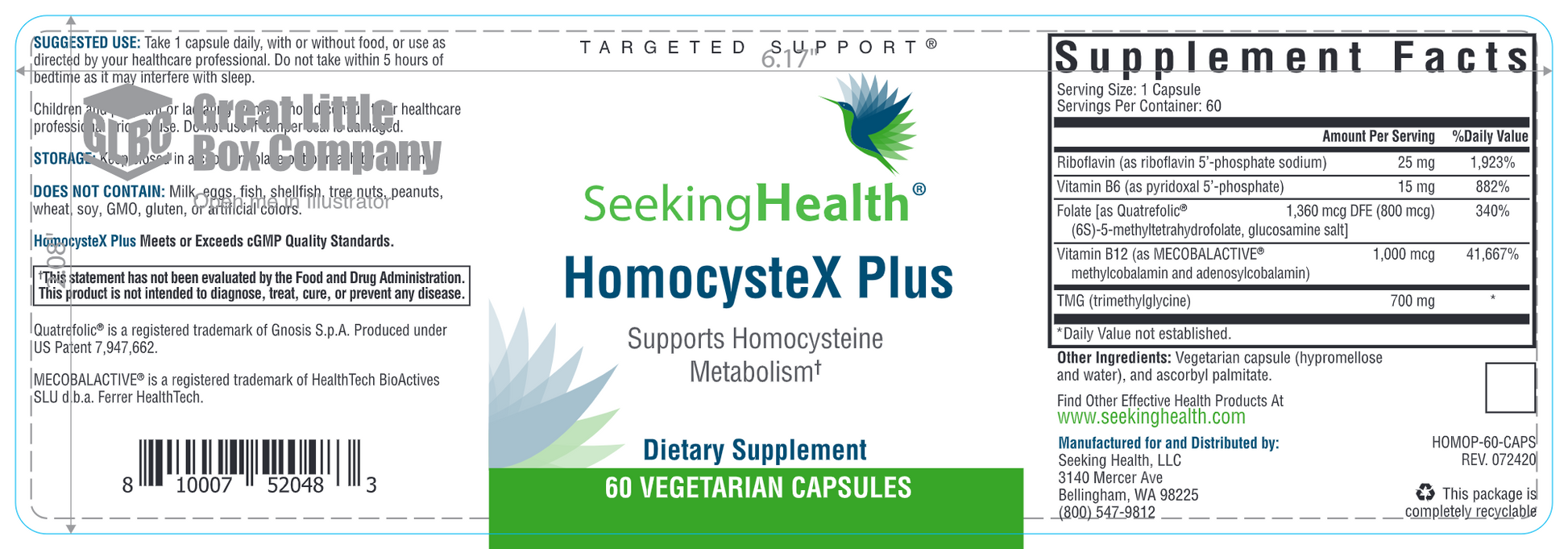 Посмотреть сравнитьHomocysteX Plus by Seeking Health supplies bioactive forms of four essential B-vitamins together with betaine (also known as trimethylglycine or TMG) to synergistically support methylation processes and normal homocysteine metabolism. The body’s methylation process is vital for formation of essential cell components such as proteins, nucleic acids found in DNA and RNA, and phospholipids that form nerve cell membranes. By transferring methyl groups (three hydrogen atoms bonded to a carbon atom, known as CH3) from one molecule to another, methylation turns on genes, activates enzymes, drives detoxification reactions, influences hormone secretion, and helps maintain normal metabolism of homocysteine, a potentially harmful amino acid metabolite. Unfortunately, poor nutrition, oxidative stress, metabolic defects, and various other factors can impair methylation processes throughout the body.*