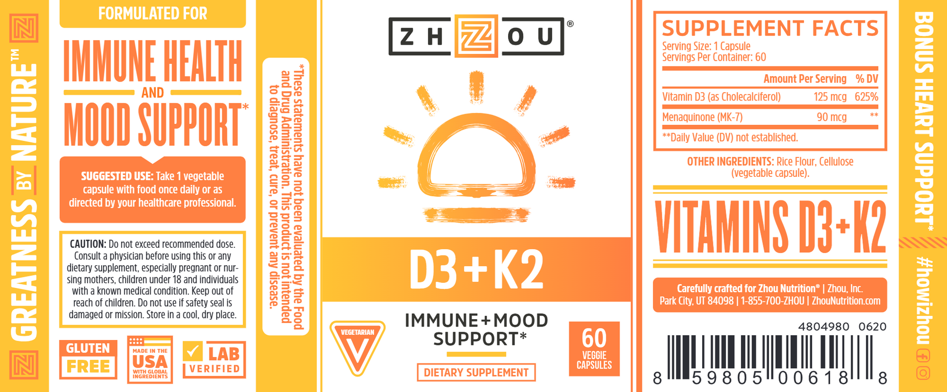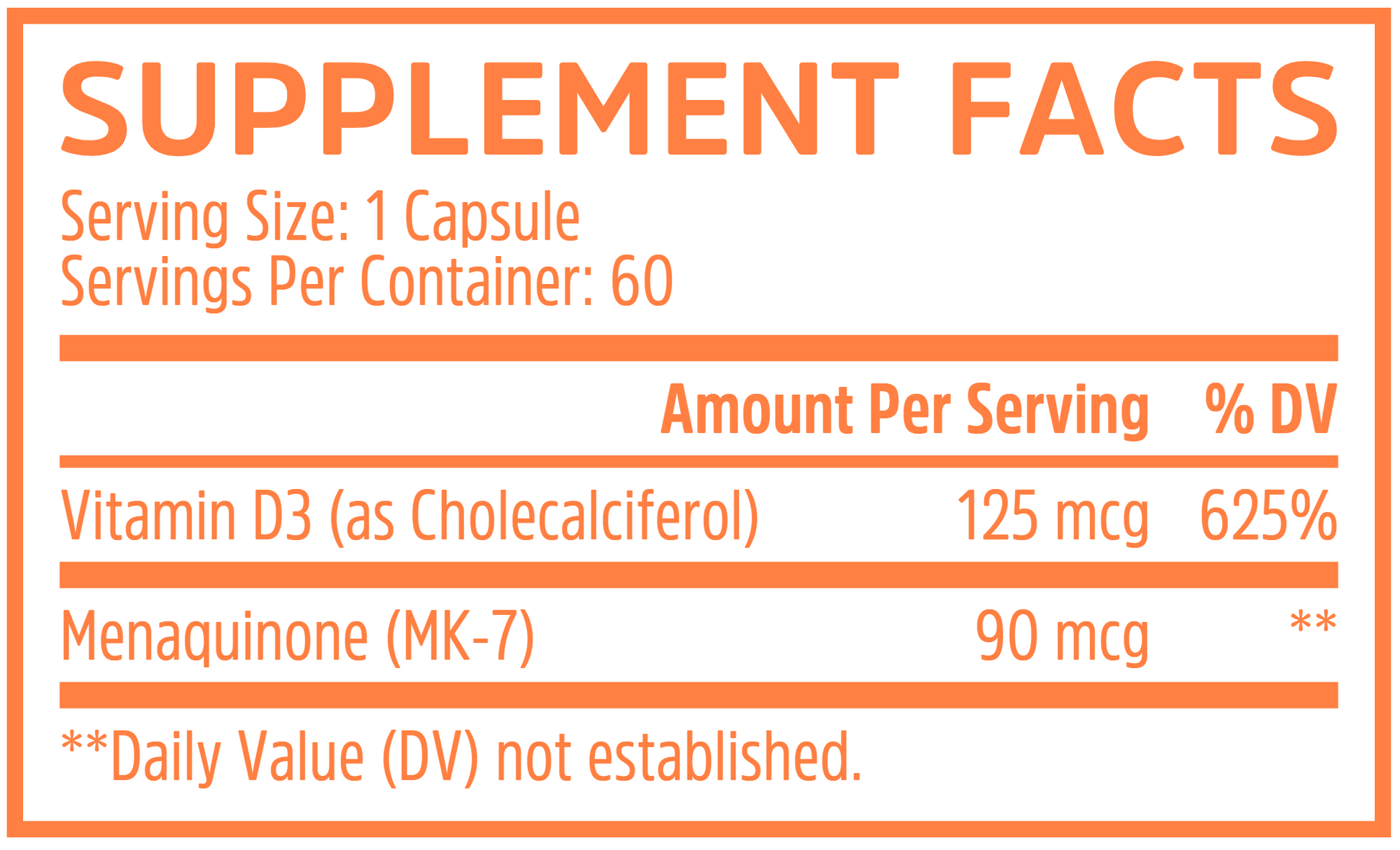 3. HEART HEALTH: Vitamin D3 may help your body absorb calcium while vitamin K2 may help your body direct calcium to your bones instead of joints and arteries.
