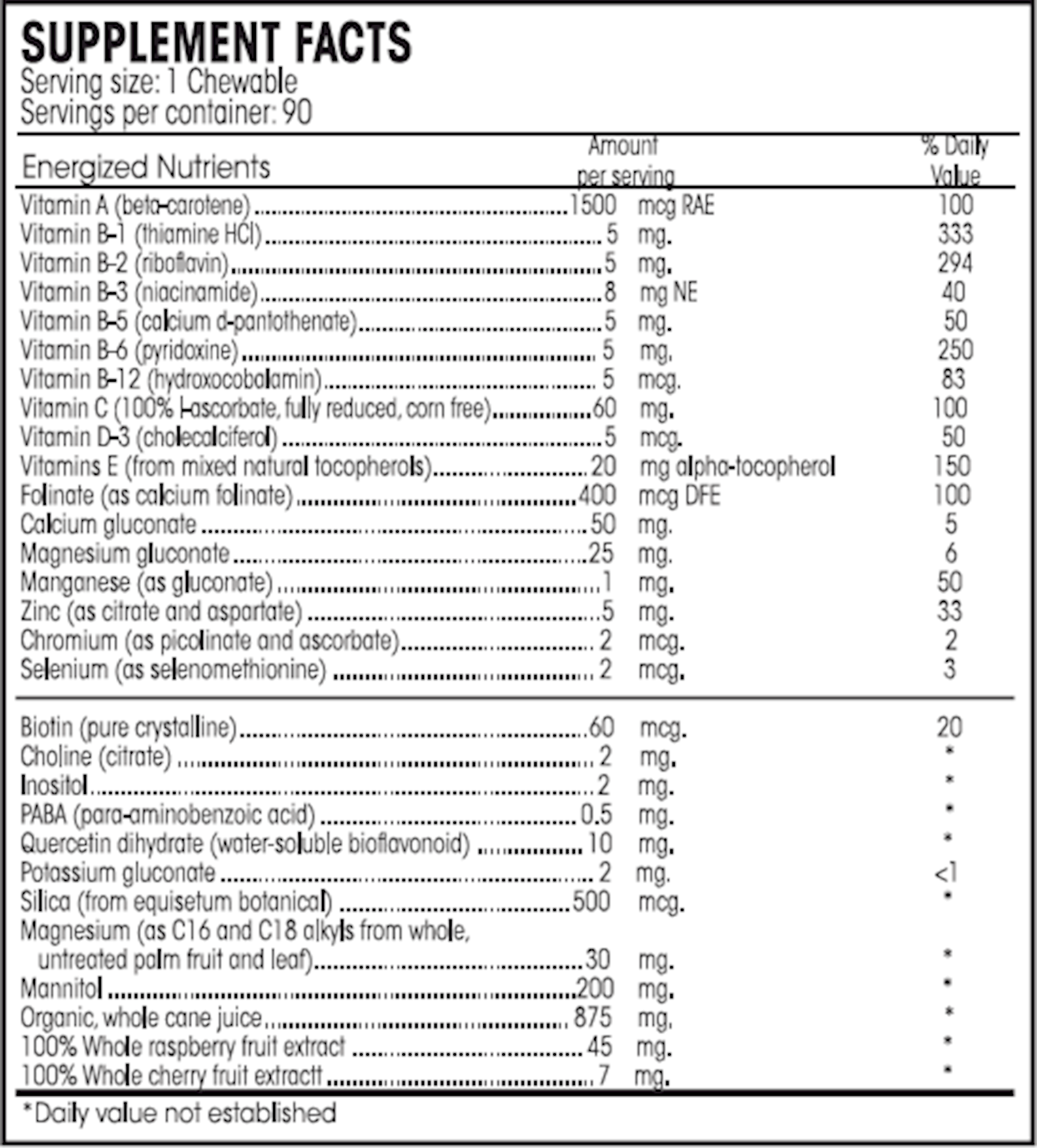 Fact: Delicious chewable sweetened with organic, whole cane juice and flavored with all-natural cherries and berries.