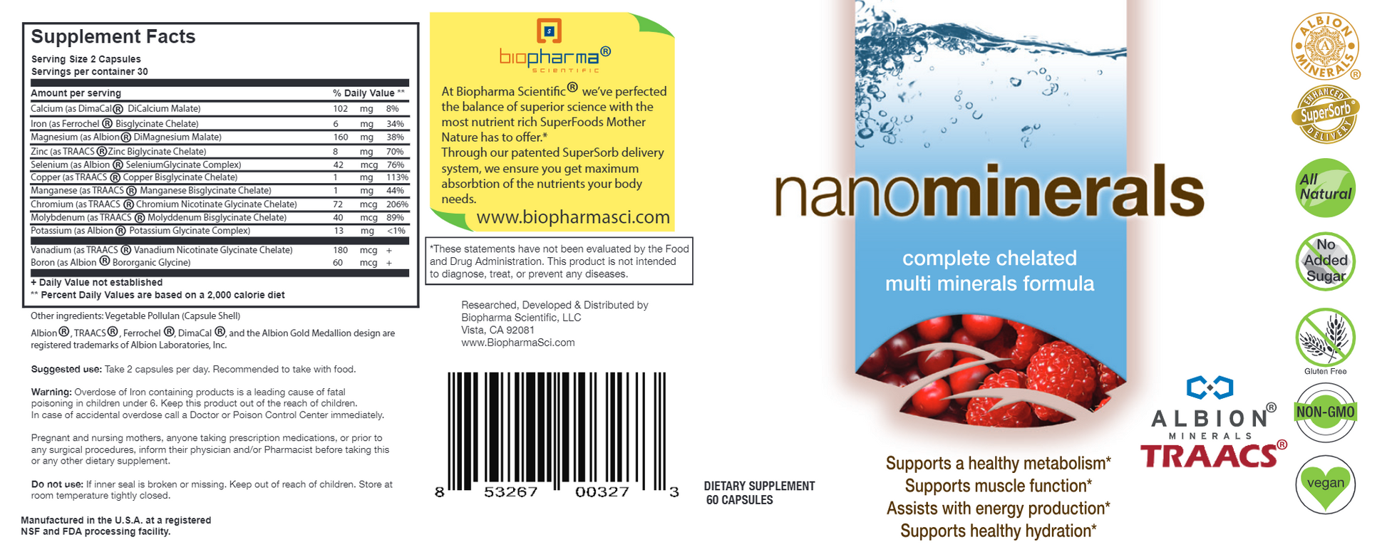 Chelation involves attaching the minerals to an amino acid allowing for better absorption. Albion has been making chelated minerals for over 50 years and is renowned their science and recognized as the world leader in mineral nutrition. With years of extensive research, clinical analysis and third party critiques, nanominerals is the highest grade mineral on the market. (This is what the gold medallion seal stands for.) It is Biopharma's promise to you to give you the worlds best ingredients, for the best results.