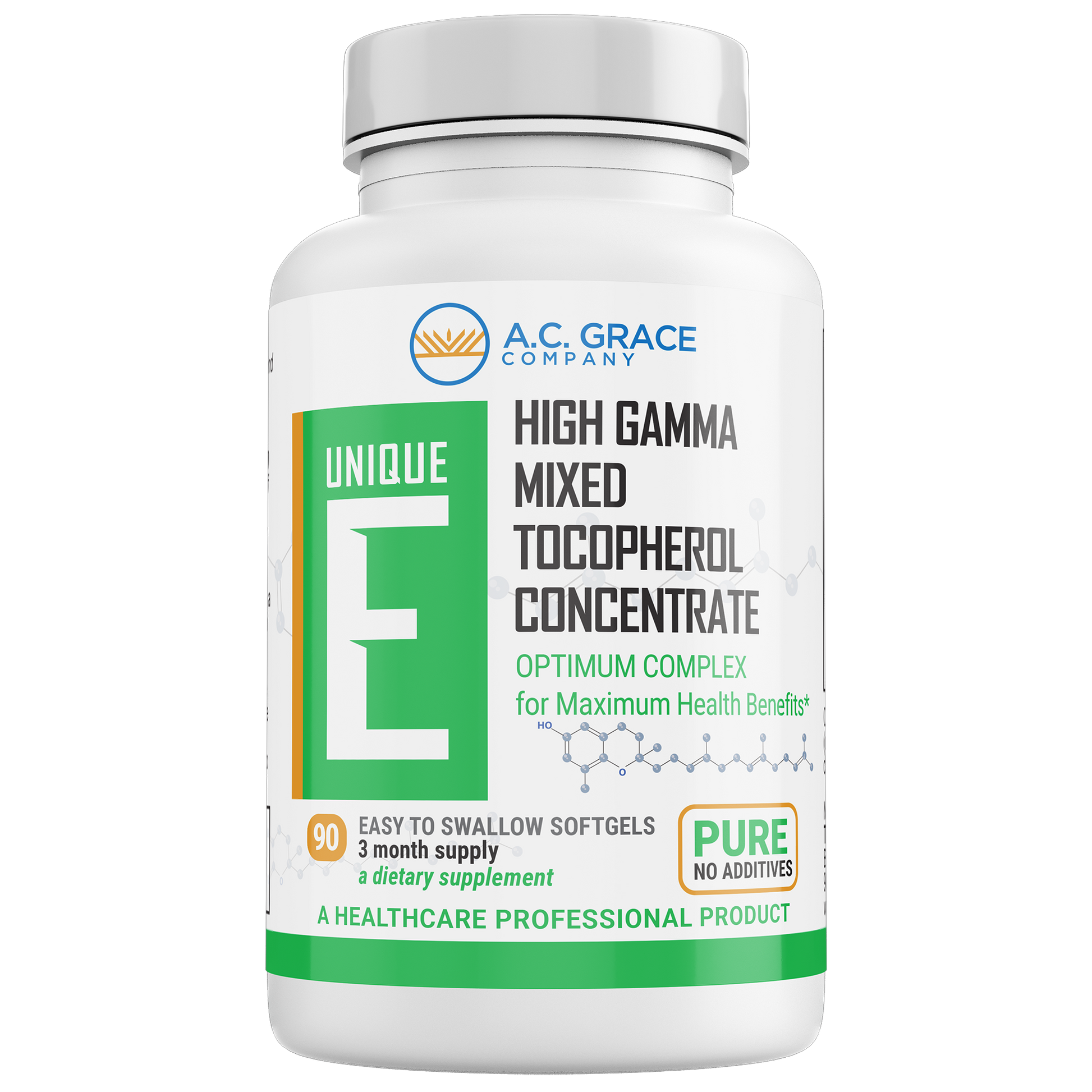 Since 1962, the A.C. Grace Company has been a pioneer in the research and development of Vitamin E products, providing the highest quality tocopherol and tocotrienol concentrates, devoid of fillers, additives, colors, preservatives, wheat, gluten or soy oil, as Nature intended. UNIQUE E® provides the high bioactivity combined with the synergistic properties of the vitamin E complex.